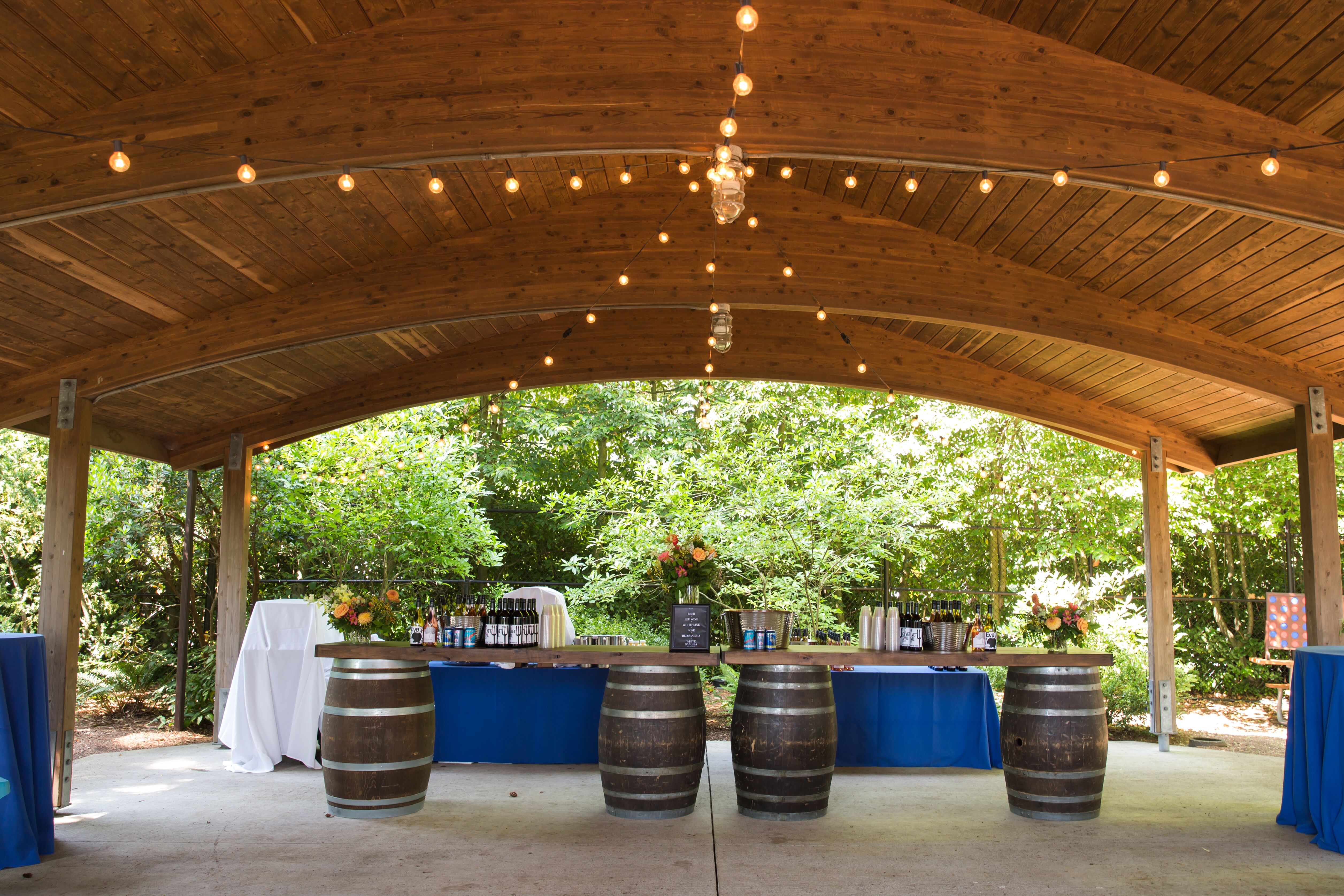 Located near our Historic Carousel, the Picnic Shelter features an open air structure, permanent picnic tables and a grassy area for extra activities. Surrounded by lush greenery, this space provides a private wooded area for your guests to socialize.